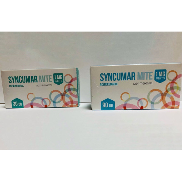 СИНКУМАР( SYNCUMAR®)Склад:діюча речовина:acenocoumarol;1 таблетка містить аценокумаролу 2 мг;допоміжні речовини:магнію стеарат; желатин; тальк; крохмаль картопляний; лактоза, моногідрат.Лікарська формаТаблетки.Основні фізико-хімічні властивості:білого кольору, без запаху, без смаку, плоскі круглі таблетки зі скошеними краями. З одного боку напис: «SYNCU», з іншого – риска для ділення. Поверхня розлому – білого кольору.Фармакотерапевтична групаАнтитромботичні засоби. Антагоністи вітаміну К.Код АТСВ01А А07.Фармакологічні властивостіФармакодинамікаАценокумарол – це антагоніст вітаміну К, що інгібує формування функціонально активних факторів коагуляції II (протромбін), VII, IX І X, додатковий протеїн C і S у печінці. Він діє через інгібування епоксидної редуктази вітаміну К. Терапевтична дія настає через 24 години після прийому і досягає максимального ефекту через 2-5 днів, причому термін дії може становити до 5 днів.ФармакокінетикаДобре всмоктується зі шлунково-кишкового тракту і виводиться з організму в основному з сечею, переважно у формі метаболітів. Добре зв'язується з білками плазми крові. Період напіврозпаду коливається між 8-ою та 11-ою годинами. Проникає крізь плаценту та у грудне молоко лише у дуже малій кількості.Клінічні характеристикиПоказання.- Лікування та профілактика тромбозу глибоких вен та емболії легеневої артерії.- Лікування дефектів інгібітора (опір активованому протеїну С, недостатність протеїнів C і S, антитромбіну III) та інших тромботичних диспозицій (таких як синдром тромбозу антикардіоліпіну та синдром тромбозу вовчакового антикоагулянту).- Профілактика венозного тромбозу стегон та колін при хірургічних операціях.Профілактика тромбоемболії:- як мінімум 3 місяці профілактики тромбоемболії у випадку гострого інфаркту міокарда, якщо наступні фактори ризику є придатними: передній інфаркт Q, тяжка дисфункція лівого шлуночка (ФВ < 35 %), системний або легеневий тромбоемболізм в анамнезі, тромб лівого шлуночка, що діагностується за допомогою 2D ехокардіографії;- у пацієнтів із фібриляцією передсердь, захворюваннями мітрального клапана, пов’язаними зі транзиторною ішемією головного мозку або із системною емболізацією.Лікування та профілактика тромбоемболії у пацієнтів із:- фібриляцією передсердь, імплантованими механічними, штучними клапанами, імплантованими біологічними штучними клапанами;- тяжкою дилатаційною кардіоміопатією;- оклюзією периферичних артерій або захворюваннями головного мозку (інсульт, транзиторна ішемічна атака), спричинені емболією (може бути непридатною у випадку гострого періоду геморагічного інсульту, підтвердженого комп’ютерною томографією).Протипоказання.· Підвищена чутливість до будь-якого з компонентів препарату або інших похідних кумарину.· Відсутність безперервного контролю лікування Синкумаром (відсутність співпраці пацієнта через психоз, деменцію, алкоголізм або відсутність лабораторного контролю).· Пацієнти з високим ризиком кровотечі.· Пацієнти, стан яких пов'язаний з вродженим або набутим геморагічним діатезом чи пацієнти, у яких в анамнезі присутні дані, що свідчать про його наявність.· Цереброваскулярна кровотеча.· Виразка, що кровоточить; дивертикуліт.· Значна кровотеча у ділянці шлунково-кишкового тракту, органів сечостатевої та дихальної систем.· Тяжка неконтроль